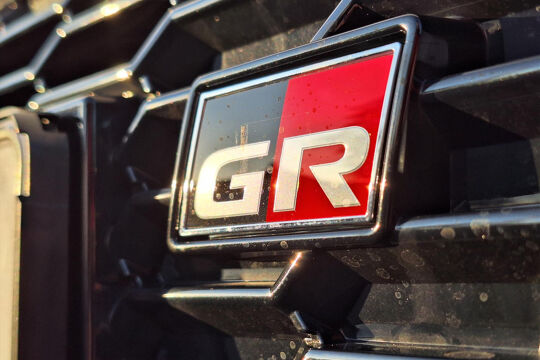 Voorbumper en grille in gaaspatroon met elementen in liquid black, ornament in liquid black en extra ornament en GR SPORT badge