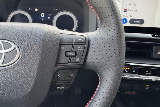 Stuurwiel v.z.v. bedieningsknoppen voor audio, telefoon, Voice Recognition Head-Up Display en Toyota Safety Sense