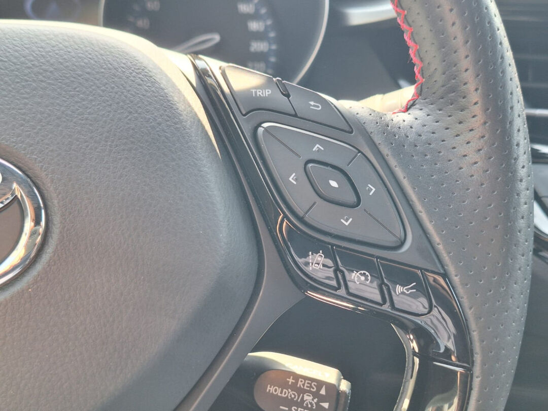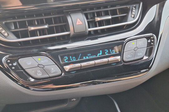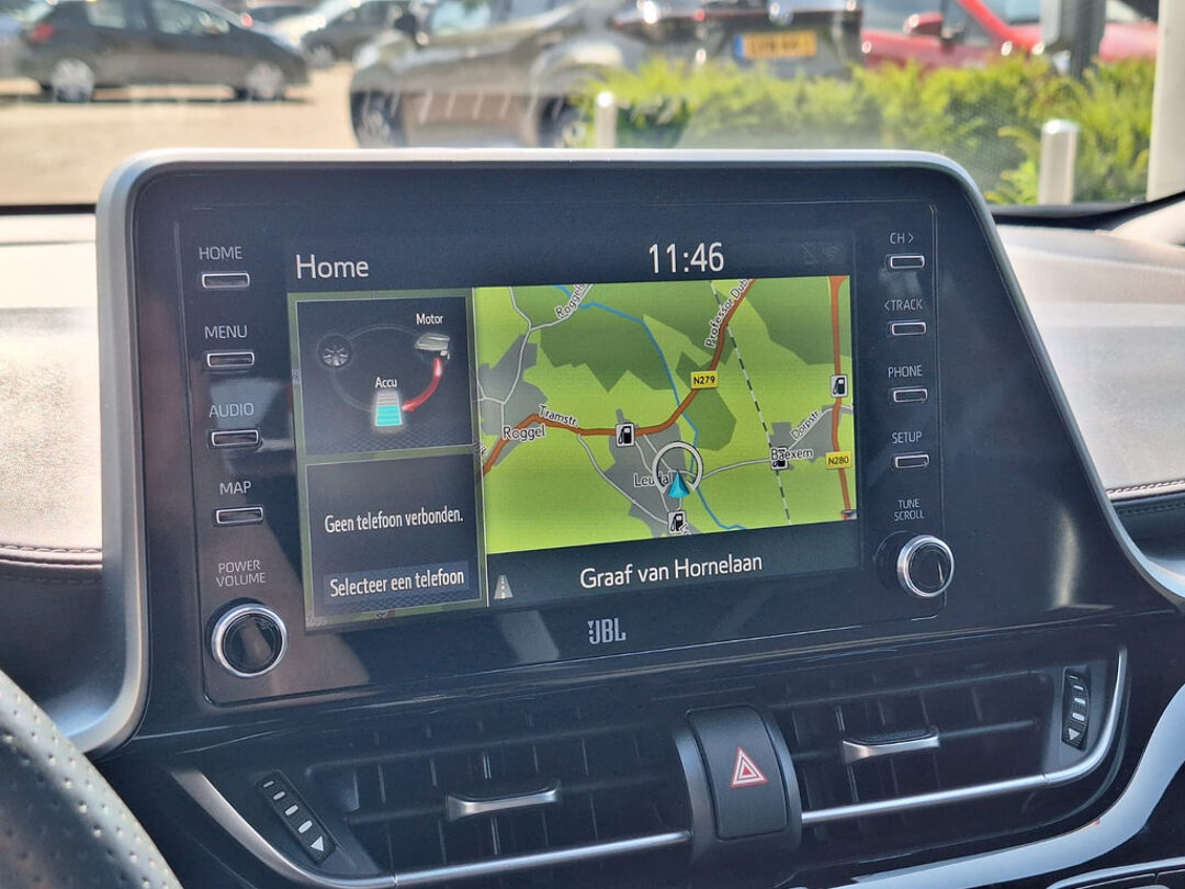 Een handige optie is de parkeerhulp met achteruitrijcamera. Achteruitrijden, inparkeren en manoeuvreren gaat gemakkelijker dan ooit. Met adaptive cruise control houdt deze auto automatisch afstand tot uw voorligger. Muziek luisteren onderweg was nog nooit zo'n genoegen! Het high performance audiosysteem levert een unieke geluidservaring. Het spreekt voor zich dat een auto als deze ook van climate control is voorzien. Het geluidssyteem in deze Toyota C-Hr is regelbaar met behulp van de audiobediening op het stuur. De Toyota is standaard voorzien van: DAB+ tuner, regensensor, keyless entry, buitentemperatuurmeter, automatisch dimmende binnenspiegel en 2 isofix-aansluitingen.