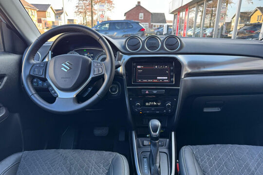 Alles vrij achter? De achteruitrijcamera laat het meteen zien. Met adaptive cruise control houdt deze auto automatisch afstand tot uw voorligger. Audiosysteem en audio-navigatiesysteem zijn gecombineerd. Zo wordt zelfs gesproken route-informatie een luisterervaring! En dankzij bluetooth klinkt uw favoriete playlist geweldig. De automatische airconditioning zorgt voor een prettige binnentemperatuur. Geen capriolen meer als u met armen vol de auto moet openen. De keyless entry heeft u al herkend en ontgrendelt de SUZUKI Vitara automatisch. De SUZUKI is standaard voorzien van: met startonderbreker, 2 isofix-aansluitingen, centrale deurvergrendeling met afstandsbediening, toerenteller, bagage afdekhoes en bekerhouder.
