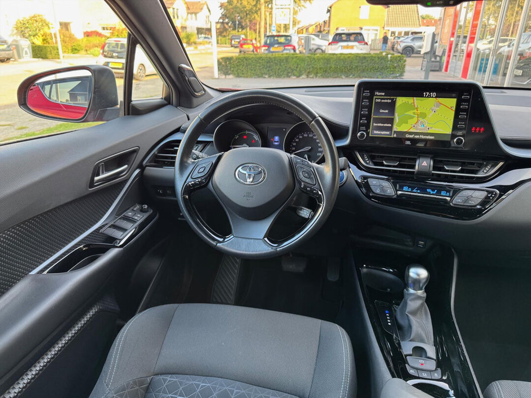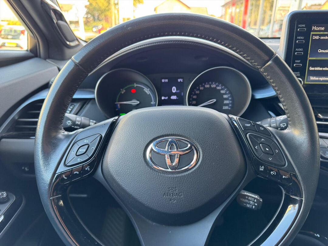 Deze zeer gunstig geprijsde Toyota C-Hr is zonder overdrijven echt een fantastische occasion. De elektromotor zorgt voor snel en traploos optrekken bij ieder stoplicht. Een van de vele voordelen van deze hybride auto. De verwarmbare voorstoelen zijn een weldaad voor rug en schouders. Verder is de Toyota uitgerust met: 18 inch lichtmetalen velgen, led-koplampen, zwarte hemelbekleding, donker getint glas achter, in delen neerklapbare achterbank en elektrisch verstelbare lendensteun.